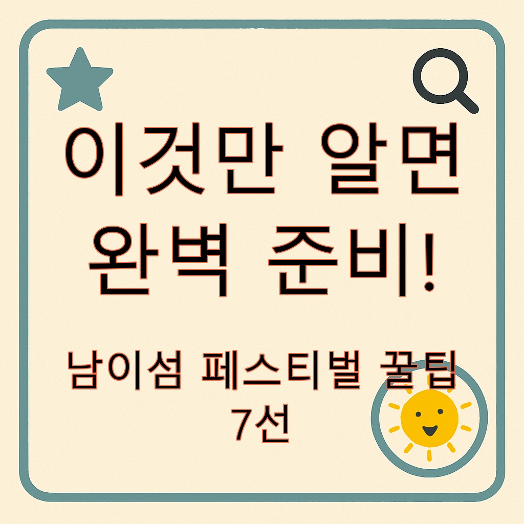 남이섬 청춘 페스티벌은 단순한 공연을 넘어 자연과 사람이 어우러지는 경험입니다. 이번 페스티벌이 더욱 특별해질 수 있도록 위 꿀팁들을 꼭 기억하고 준비해보세요. 작지만 세심한 준비가 가장 큰 만족으로 돌아올 것입니다.